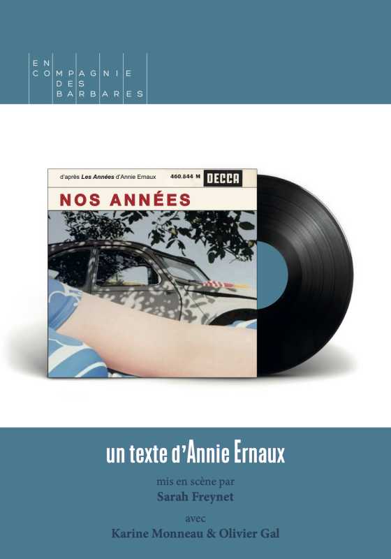 En Compagnie des Barbares vous propose une traversée des soixantes dernières années à travers les mots d’Annie Ernaux, clairs et incisifs, et les musiques qui ont marqué les changements d’époque et de mœurs : de Bourvil aux Doors, des Yéyés à Queen, de la naissance du RAP à la musique électronique. Karine Monneau lit le texte d’Annie Ernaux Les Années, qu’elle quitte parfois pour tenter une valse ou une figure de hip hop tandis qu’un DJ passe avec ses vinyles les musiques qui ont marqué nos années, de 1950 à aujourd’hui.