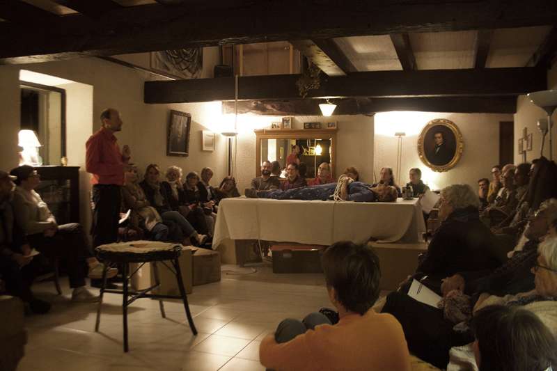 Ce spectacle chez l’habitant construit sa dramaturgie en fonction de la maison investie. Tout semble se créer sur le moment, dans le rire et les disputes, comme en famille.